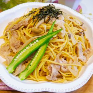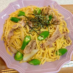 ③②にほんだし、酒、醤油、茹で上がったパスタを加えて、よく混ぜながら炒めたら 完成です❤︎