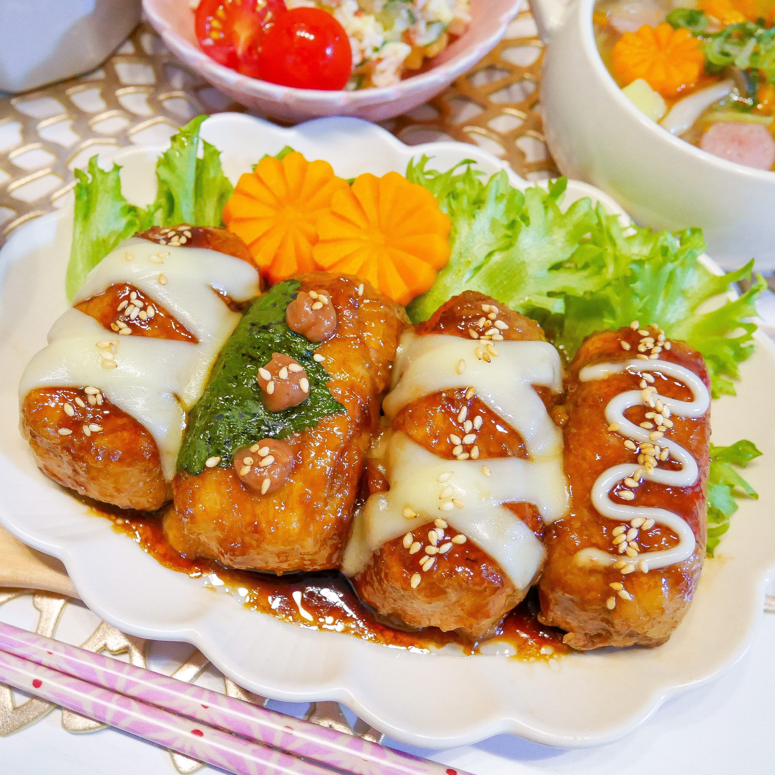 絹揚げのチーズイン肉巻き